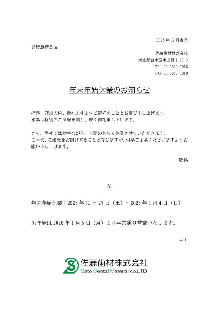 2026年1月5日(月)より通常通り営業を開始いたします。