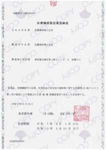 医療機器製造業登録証.R7.4.1~R12.3.31